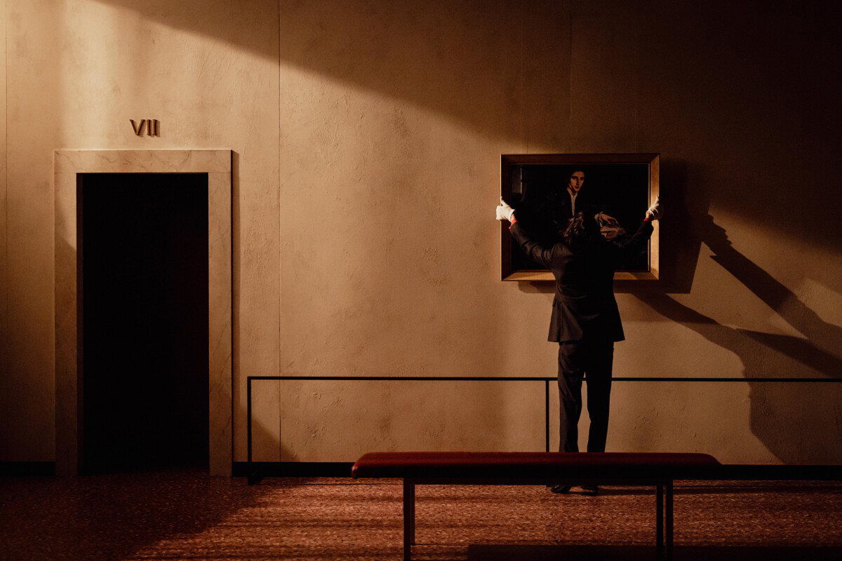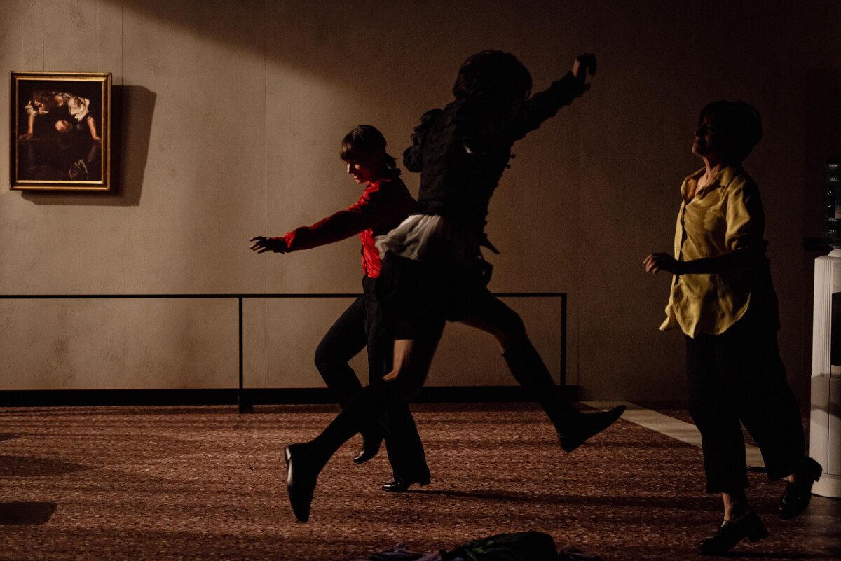 Elsa Agnès nous convie dans les turbulences d’un musée imaginaire, à Venise. Trois personnages s’y inventent ensemble et s’échappent dans la fréquentation des œuvres, particulièrement celles de la Renaissance italienne. Trois solitaires un peu voyous et un peu fous, au passé sombre, comme à l’arrêt. L’une puise dans les toiles ses fantasmes amoureux, l’autre l’oubli d’un geste irréparable, le troisième la possibilité d’une île à eux, loin d’ici. Deux gardiens et une passante assidue, qui refont et rejouent leur histoire à l’écart, circulant entre la salle d’exposition et la salle de repos. Ils se révèlent de toile en toile et se remettent en mouvement entre un Caravage et la machine à sandwichs… Ils refont leurs vies chaque jour un peu autrement, au-delà de toute mesure. Mais quelle mesure ? Et qui mesure ?