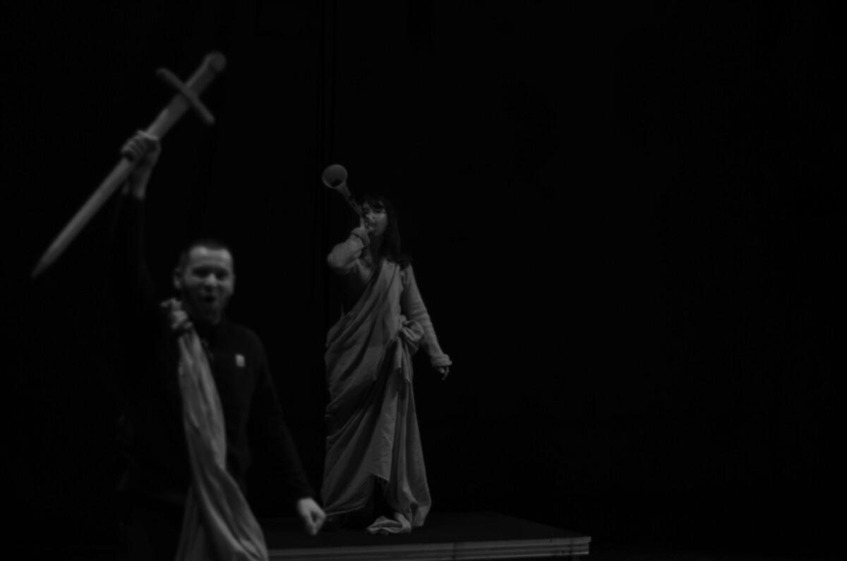 Il s’agit d’aller voir en toute curiosité la vie en commun des citoyens athéniens au Ve siècle avant J.C. et d’en faire théâtre, sans folklore particulier ; d’en jouer aujourd’hui avec gourmandise et un grain de folie, dans une période pré-électorale comme presque tout le temps ; de se demander où nous en sommes au fond avec la démocratie — directe ou indirecte — et avec l’idée qu’on s’en fait les un·e·s les autres, qu’on la déteste ou la veuille autrement, quelque part entre toges, gilets jaunes et costumes cravates. La pièce tente de donner à voir un temps d’avant les ruines et les fouilles, où les représentants étaient tirés au sort, et où chacun — tout le monde, donc — pouvait être choisi, faire valoir sa voix sur mille sujets concernant la vie ensemble et même sur une tragédie — Eschyle Sophocle Euripide — qu’on avait vu la veille. Enfin, tout le monde… sauf les femmes, les enfants, les étrangers et les esclaves.